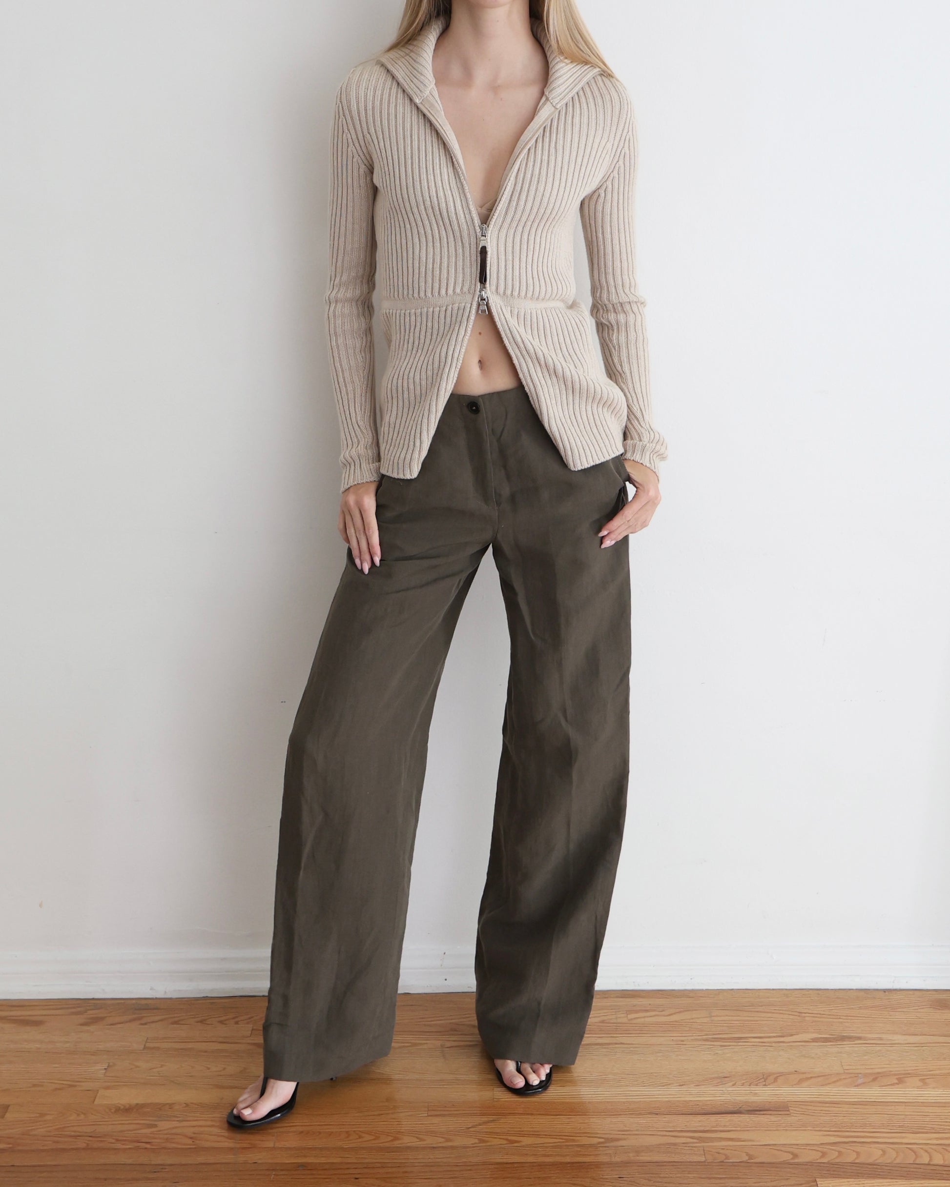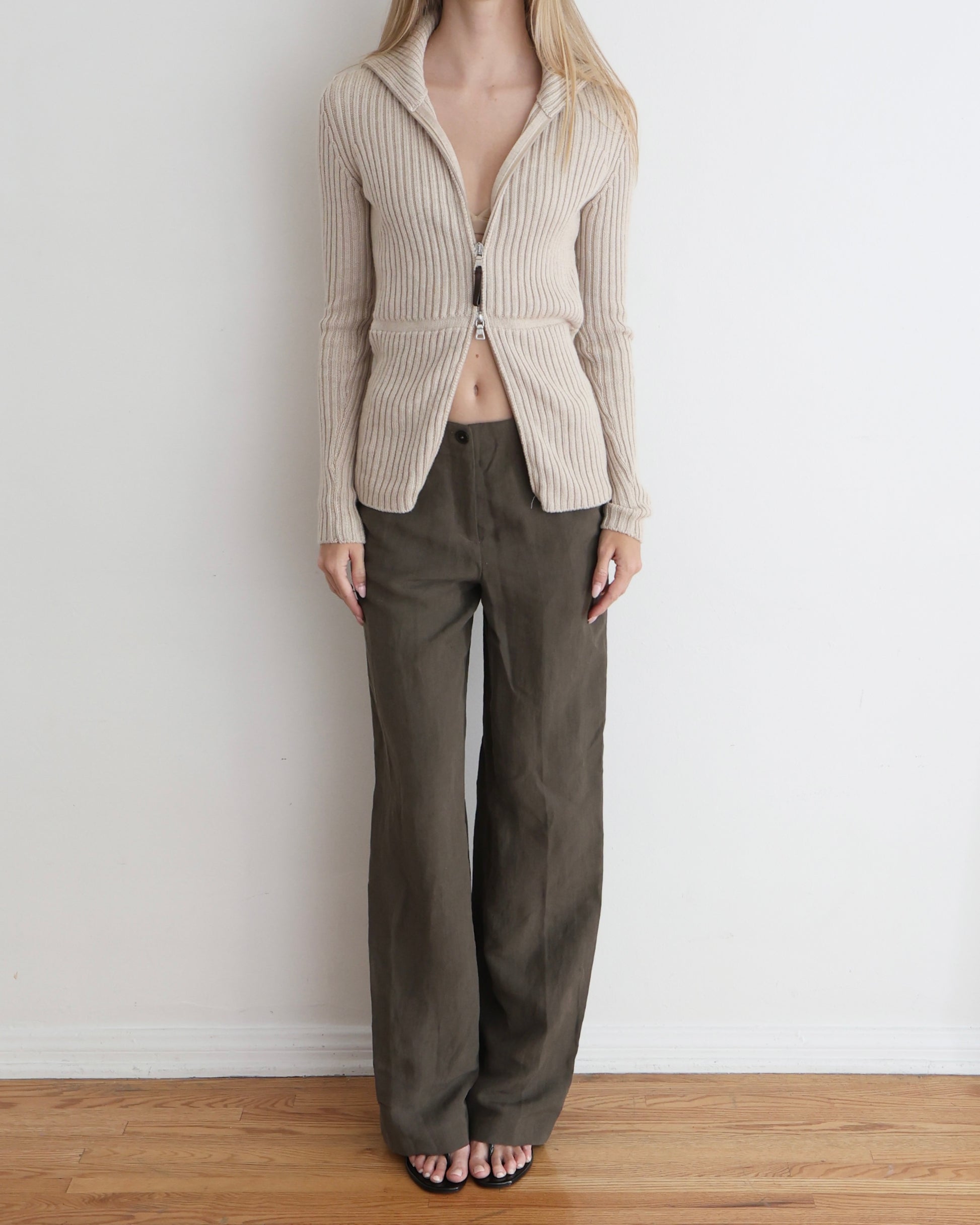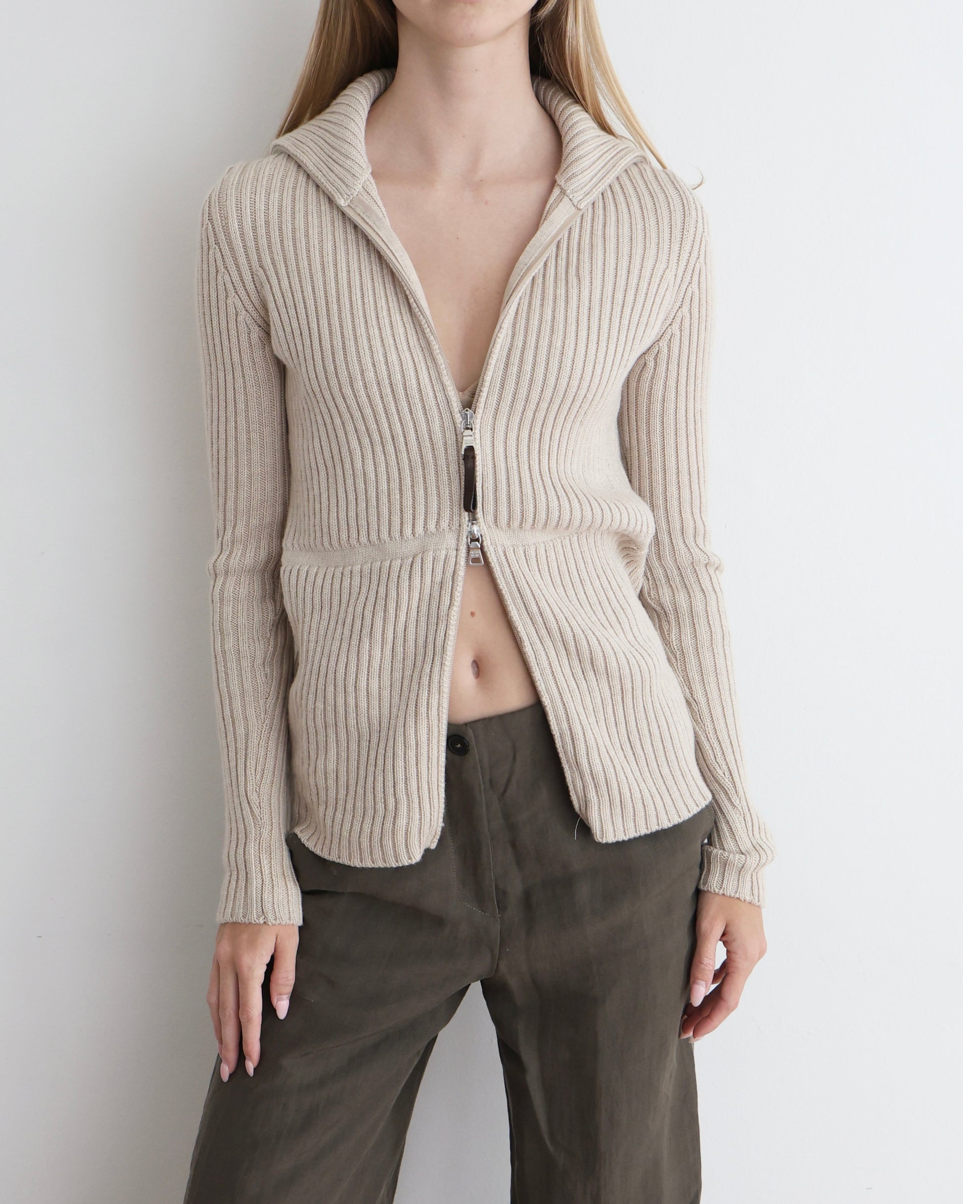 Vintage 90's Prada cream sporty ribbed knit zip up sweater.